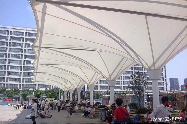 膜結(jié)構(gòu)遮陽(yáng)雨棚因其強(qiáng)度高、耐久性好、防火難燃、自潔性好、使用壽命長(zhǎng)等特點(diǎn),在城市建設(shè)中頗受歡迎。在熱鬧的廣場(chǎng)上、在人來(lái)人往的公園里、在靜謐的小區(qū)里……我們都可以看到膜結(jié)構(gòu)遮陽(yáng)雨棚的身影。雖然我們平時(shí)都沒(méi)特別關(guān)注過(guò)它,但在生活中,我們或多或少都與它有過(guò)接觸:天氣炎熱的時(shí)候,我們?cè)谀そY(jié)構(gòu)遮陽(yáng)雨棚下面納涼休息;下雨的時(shí)候,我們也躲在它的港灣里,期盼大雨早點(diǎn)過(guò)去。長(zhǎng)此以往,可以說(shuō)膜結(jié)構(gòu)遮陽(yáng)雨棚已經(jīng)成為城市里不可缺少的一部分了。